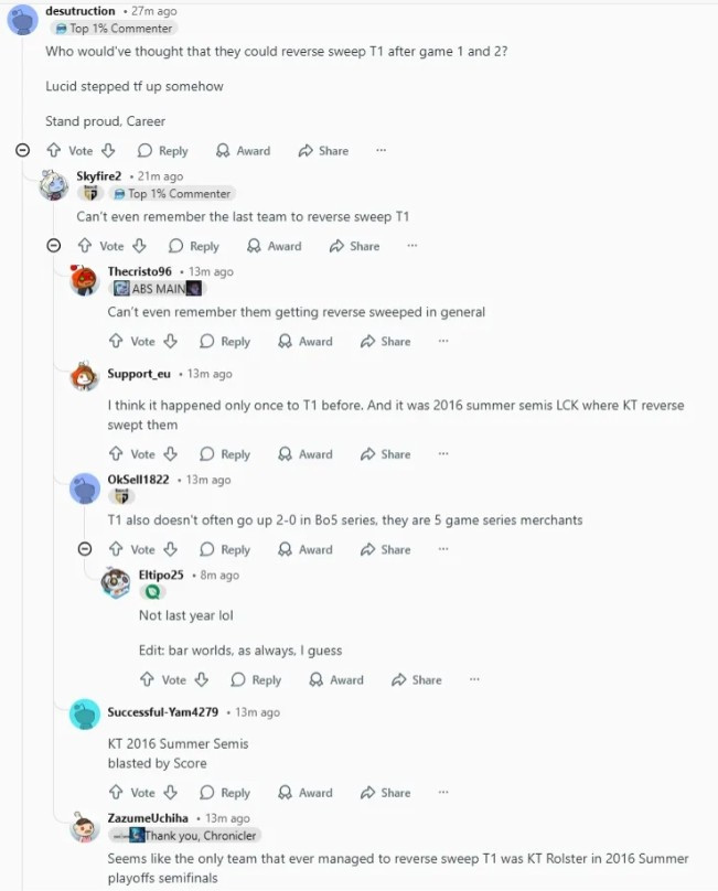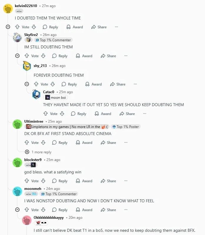 直播吧2月23日讯2026LCK杯败者组T1对战DK,DK成功让二追三战胜T1晋级败者组决赛,本场比赛也引发了Reddit网友的热议;