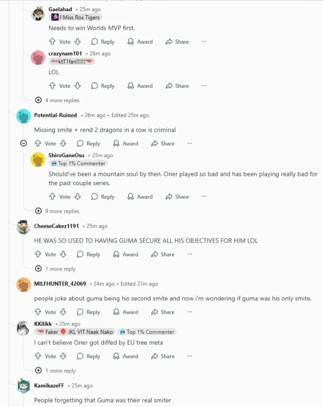 Oner在去年成为最稳定的队员后,现在又开始状态低迷了,真糟糕,但我相信他们会反弹的。