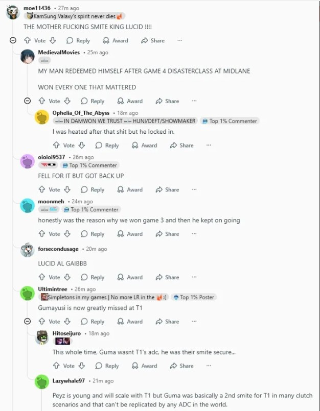 Zeus这么说过吗?一直是Gumayusi和Oner在说他们不会离开,但Gumayusi被踢出去了...我不确定Keria是否也说过他不会离开T1,但我觉得Zeus从没说过。